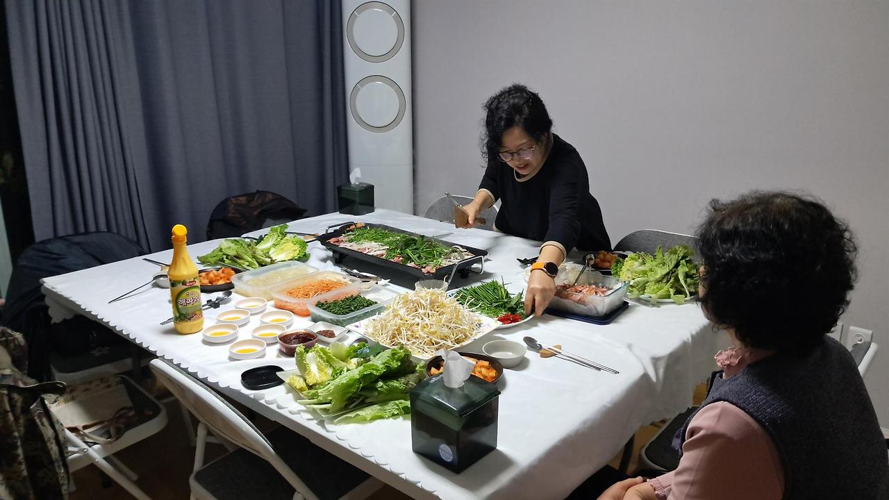 따스한 손길들이 함께 준비해 온 음식들을 감사함으로 나누며