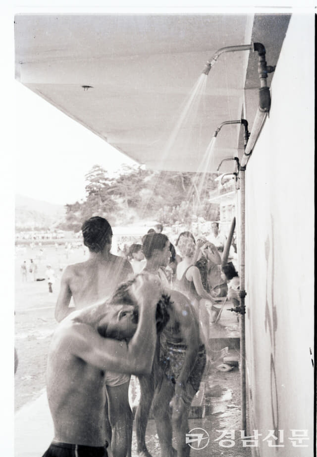 1960년대말 가포 해수욕장의 샤워시설 모습.